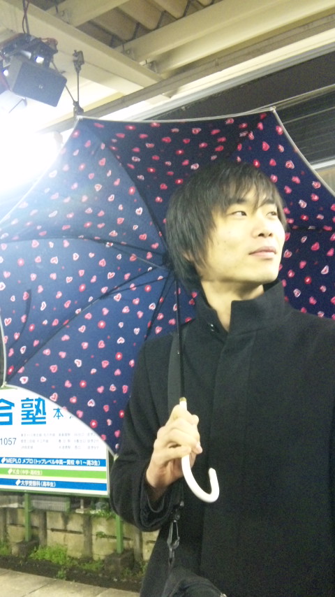 はてはて、写真は通しの帰り道でのおとめん松下仁。ハートの傘を手に。